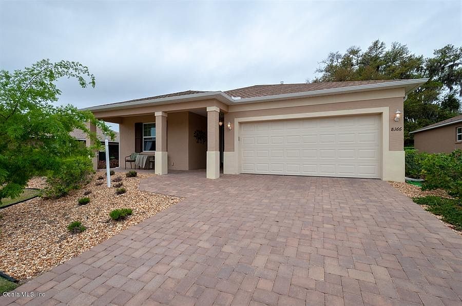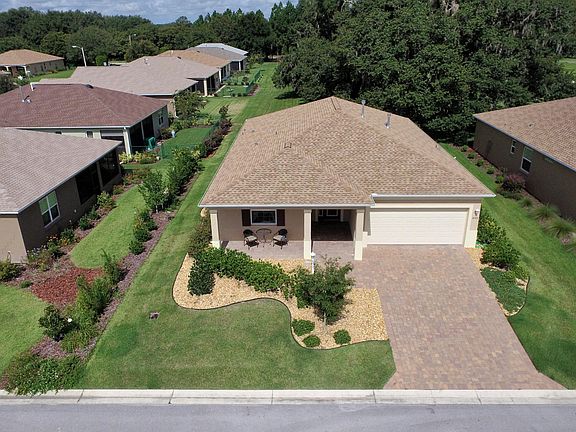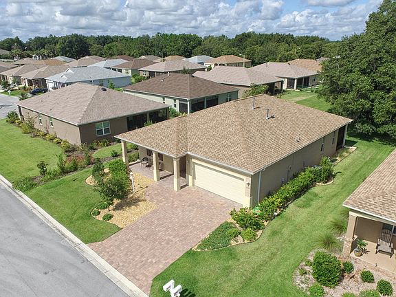 Step into a tranquil oasis feeling On Top Of The World in this premier 55+ Community. $38,000 custom upgrades include pavers, a stunning front door leading to a fully open, spacious floorplan, spectacular gourmet kitchen, two gorgeous tile and granite bathrooms with walk-in showers. Eyes are drawn to a screened-in patio with mature tree landscaping on an expansive green space maintained by HOA.
