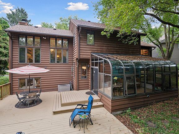 Tucked into the trees of West Bloomington, this updated home offers space to relax, gather, and enjoy the outdoors. The vaulted living room shines with natural light, hardwood floors, and a cozy fireplace. The kitchen blends granite counters, custom cabinets, and stainless appliances, with easy flow to the dining room and glass sunroom—perfect for morning coffee or evening unwinding. Upstairs, the primary suite feels like a retreat with its spa-like bath. Step outside to a spacious deck and stone fire pit surrounded by mature trees. A home that feels private, yet keeps you close to parks, trails, shops, and commuter routes.