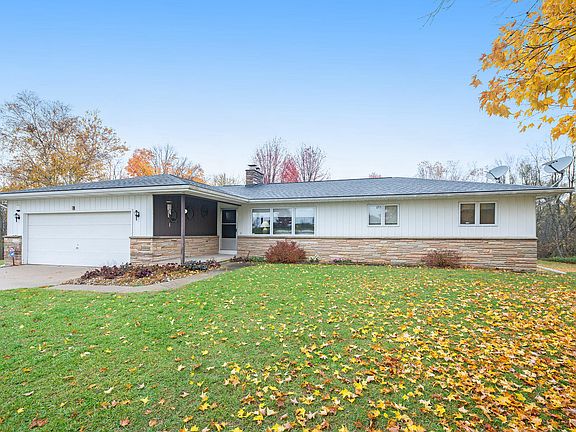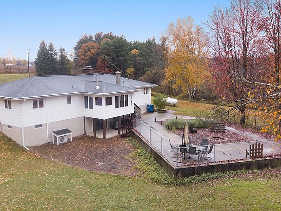 This amazing piece of property has 16 acres and approximately 2000 ft of frontage on the gorgeous Flat River along and is partially wooded. This very well maintained home w/ 3 good sized bedrooms, 2.5 baths, 2 wood burning fireplaces, and walkout basement is an oasis in the woods. So much wildlife right in your backyard. The main floor has a large kitchen with corian countertops and main floor laundry with full bath, large family/rec room w/ large bay windows. The basement has a huge family room, half bath, workshop and storage room. A brand new heat pump that cools the entire house and heats the home cutting down on gas costs. Pella windows, well insulated and simply well cared for. Pole barn is 38 X 40 partially insulated with furnace. 2 stall attached garage with hot and cold water.