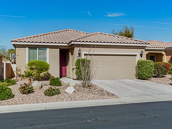 Do not hesitate on this fantastic value! This rare and highly upgraded Cordoba plan at 1295 SF (EST.) is built just 38 SF larger than a Canterra plan but you will not only appreciate the distinct architectural improvements but the entire house renovation. The dining room is placed outside the kitchen and is wide open to the great room and also has views, through a floor to ceiling glass slider, of the rear patio. There is beautiful man made wood flooring installed everywhere except the master bath which has brand new tile floors. The Master Suite also has dual vanities, a luxurious granite countertop, a glass enclosed shower and an enormous walk-in closet. The walls of the home are freshly finished with designer paint and the kitchen has new stainless steel appliances. There are plantation shutters and vertical blinds on windows and fans on ceilings. A new upscale washer and dryer were recently installed in the laundry room.The guest bedroom has a built-in desk that the seller will remove if requested. The quiet patio has a finished concrete deck that extends beyond the covered portion that overlooks groomed, mature, easy care desert landscape and lush artificial grass.