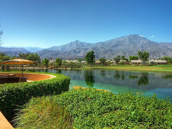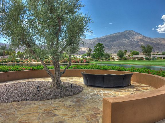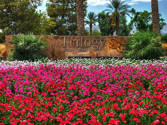 Experience a peaceful and relaxing lifestyle at the 55+ Trilogy La Quinta. The newly remodeled open concept Cassius plan affords you 2091 sq.ft., including 2 BD/2.5BA, den/office, formal dining, crown molding and plantation shutters. The home interior and exterior has been recently painted with trendy soft grays/whites. The living area features a gas fireplace, built-in entertainment center with lights/shelves, and views of patio and rock waterfall. A Chef's kitchen has all new stainless steel appliances, slab granite counters, kitchen island with bar seating of four, walk-in pantry, and spacious breakfast area. Large master suite features a French door leading to the back patio, an en suite bath with dual vanities, marble counters and shower, and walk-in closet. Guest bedroom features privacy and a full bath. Beautiful covered patio with a mountain view, rock waterfall, and lush landscaping views. Garage features new epoxy floor and a golf cart garage. home is offered Turnkey furnished with majority of furnishings very new. Home is in pristine condition and waiting for that special couple to move in ! Buyers to pay Trilogy Community Enhancement fee of .5% (.005) of purchase price.