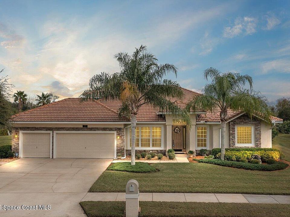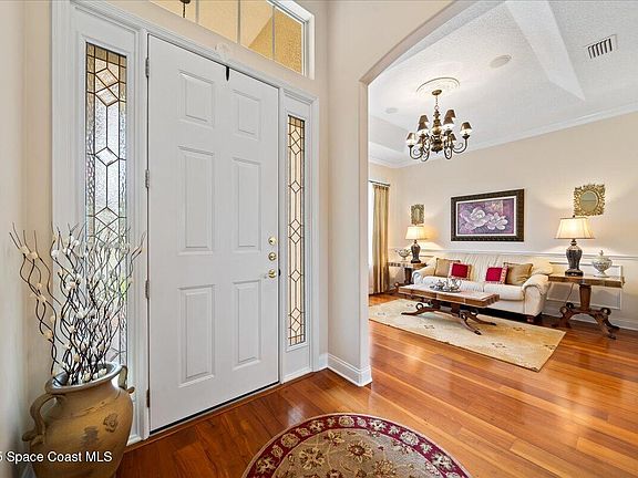 One of the most sought-after gated golf course communities on the Space Coast, This Baytree Golf Community offers the pinnacle of luxury living. Nestled on a private cul-de-sac with serene nature preserve views, this stunning pool home boasts 4 spacious bedrooms, a private office, and an expansive upstairs loft/bonus room with its own full bath. Designed for elegance and comfort, the home features wood floors, soaring ceilings, and formal living and dining spaces that flow effortlessly. Outside, a custom pool, paver patio, and grill area create a private oasis surrounded by lush landscaping. Baytree is also home to a signature Gary Player-designed golf course, and offers world-class amenities including tennis courts, a heated pool, clubhouse, jogging paths, playgrounds, and picturesque lakes. Ideally located near I-95, top-rated schools, beaches, shopping, dining, and conveniently located near airports, this is more than a home it's an unparalleled lifestyle in a premier community.