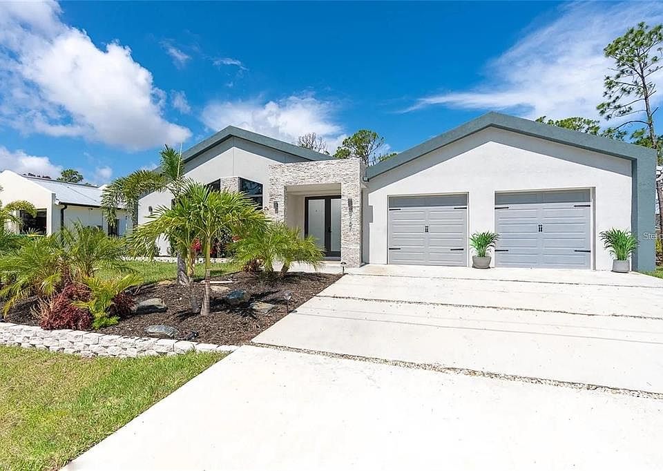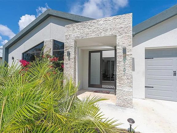 Modern Luxury Meets Coastal Serenity in Southwest Florida Step into unparalleled luxury with this fully furnished, custom-designed steel-frame home, where sleek modern architecture seamlessly blends with the natural beauty of Southwest Florida. Completed in 2021, this single-level residence offers three bedrooms, two and a half bathrooms, and a spacious two-car garage—all thoughtfully constructed with contemporary style, structural integrity, and lasting quality in mind. Tucked away in a quiet, well-maintained neighborhood, the home offers a peaceful retreat that feels both private and connected. Inside, the open-concept floor plan effortlessly merges living, dining, and kitchen spaces, creating a fluid environment perfect for both everyday living and entertaining. High ceilings and expansive windows fill the home with natural light, while refined design elements throughout create a sense of relaxed sophistication. The living area invites comfort and style with a modular sofa arrangement, elegant electric fireplace, and carefully curated furnishings that are both functional and beautiful. The kitchen stands as the heart of the home, featuring sleek quartz countertops, a striking waterfall island, stainless steel appliances, and French glass doors that open gracefully to the outdoors. Whether you’re preparing a quiet dinner or hosting guests, this space is designed to inspire. Retreat to the tranquil primary suite, where sunlight filters in through large windows and a spa-inspired ensuite bathroom awaits, complete with dual vanities, quartz countertops, LED mirrors, and a custom tile walk-in shower. The additional bedrooms offers comfort and versatility for family, guests, or home office use, with each space echoing the same high standards of design and finish found throughout the home. A thoughtfully placed half bath adds convenience, while a fully equipped laundry room enhances functionality. Throughout the home, tile flooring offers clean lines and easy maintenance, while the metal roof and high-impact windows provide durability, energy efficiency, and peace of mind during Florida’s seasonal weather. Every finish, fixture, and piece of décor has been carefully selected to create a cohesive, move-in-ready experience that feels both luxurious and welcoming. Outside, two covered lanais extend the living space and offers the perfect setting to enjoy morning coffee, evening cocktails, or simply soak in the year-round sunshine. Surrounded by quiet beauty and minimal upkeep, the property provides the ideal setting for embracing the Florida lifestyle. Located just minutes from the world-class golf courses of Rotonda West, the light sand beaches of Boca Grande and Manasota Key, and only 1.5 miles from Publix and everyday conveniences, this home offers a rare blend of serenity, sophistication, and accessibility. Whether you’re looking for a full-time residence, seasonal escape, or turnkey investment opportunity, this modern coastal home delivers the best of Southwest Florida living—fully furnished, exquisitely finished, and ready for you to move in and enjoy..