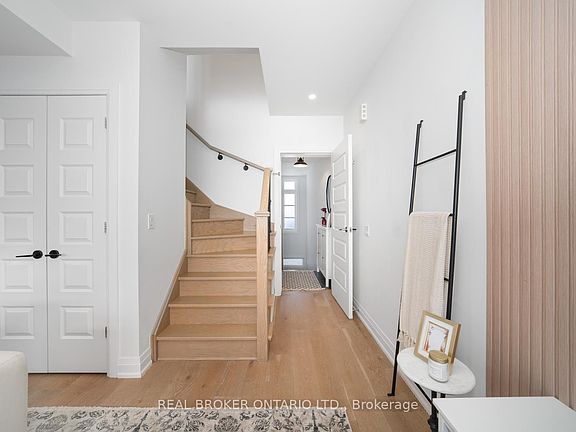 Welcome to this absolute dream of a townhome in Vaughan's desirable Fairground Lofts community, perfectly located steps from Woodbridge Ave. Offering 2 bedrooms & 2 bathrooms, this beautifully upgraded unit boasts sun filled south facing exposure, with engineered hardwood flooring throughout! Open concept layout. Freshly painted. Kitchen centre island is perfect for entertaining, with newly installed backsplash. Accent wall featuring white oak slatted wall panels in cozy living room! Renovated powder room on main floor with automatic lighting! Spacious primary bedroom with huge walk-in closet and huge windows! Walk out onto balcony facing the Woodbridge Fairground - an unobstructed view. Gas line for BBQ hook-up on balcony. This move-in ready property is a fantastic opportunity in a highly desirable community. Combining style and functionality, this home truly boasts pride of ownership! Close to shops, highways, public transit and more! Don't miss out on this incredible opportunity to call #48 yours! See virtual tour!