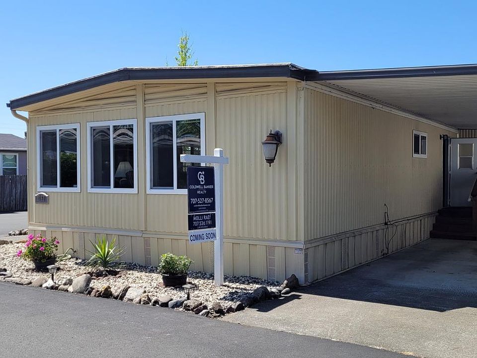 **Welcome to thee BEST value in WMCC~ a 55+ community!** Best priced unit with inspections~ all repairs have been completed & a motivated Seller!! Move right in!! What more can you ask for?? This Darling 2 Bedroom, 2 Bath home in the heart of the wine country is waiting for you to call HOME. Once you step up onto the large covered & fenced Trex deck patio, you'll enter into the large living area~ great for entertaining. The newer double-paned windows allow ample natural light and add insulation. The kitchen is perfect with newer cabinetry, appliances & a new stainless sink. Master and guest baths have been tastefully updated as well with vanities, tub and shower. Washer & dryer come with unit. Huge fenced, low maintenance yard~ perfect for Fido or gardening! Offering mature lemon and apple trees, even a freshly painted shed for your gardening widgets/storage purposes. Light, Bright & PERFECT! Roof overlay 8.2021. Conveniently located in Windsor close to shopping, transportation, recreation & WINE! Please reach out with any questions ~KEEP SMILEN~