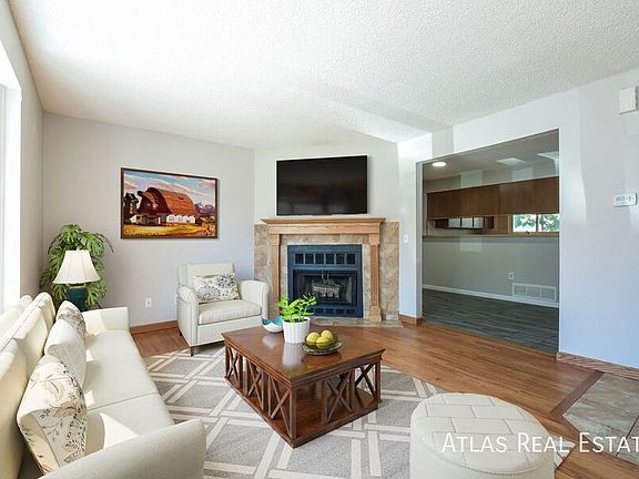 Step into this inviting home featuring a spacious great room with soaring ceilings, gleaming hardwood floors, a cozy fireplace, and a beautiful bay window that fills the space with natural light.