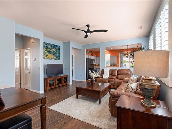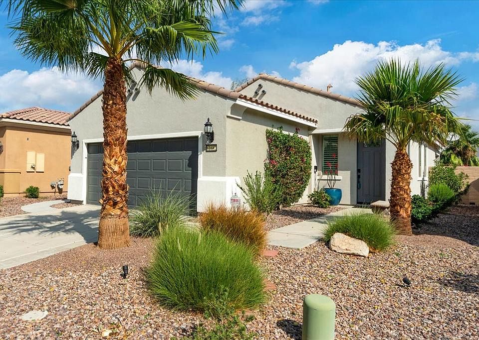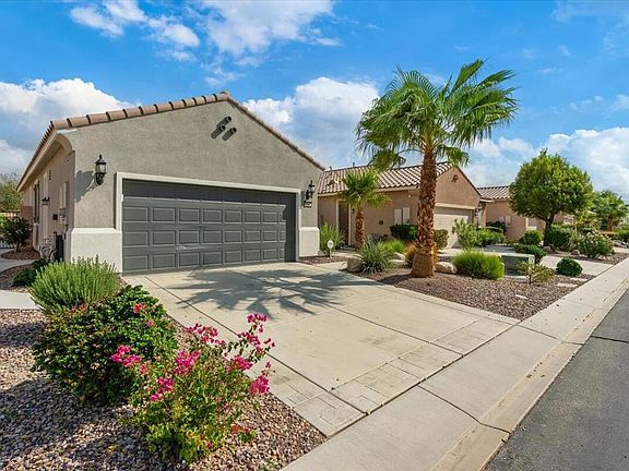 TURN-KEY FURNISHED GRANADA,IMMACULATE AND MOVE-IN READYWelcome to this beautifully maintained and decorated Granada Floorplan, offering 1099 sqft of thoughtfully designed living space and turnkey furnished for immediate enjoyment. From the moment you arrive, you will notice the custom front door and freshly painted exterior, setting the tone of the quality and care throughout the homeInside fresh interior paint, wood tile flooring and newer carpet in the bedrooms, elegant plantation shutters create a clean and welcoming atmosphere. Each room is equipped with ceiling fans for year round comfort. The open living space flows seamlessly into a kitchen and dining area ideal for entertaining or relaxed everyday living. The primary suite offers comfort and functionality, featuring dual vanities, a spacious walk-in closet and plenty of natural light. The second bedroom is perfect for guests or a home office. Step outside to your private backyard oasis with lush professional landscaping, an oversized patio an a walkway that wraps around to the front of the house. The garage includes ample storage and epoxy finished concrete making it very practical . This home has everything you need and more. Just bring your toothbrush and start living the lifestyle you deserve!