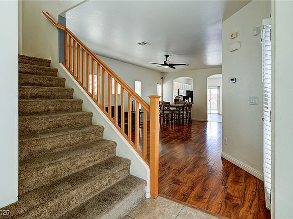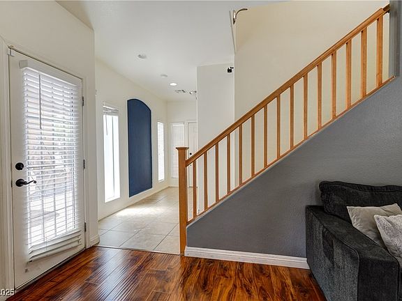 Step into style in this stunning two-story home nestled in Mountain’s Edge with no rear neighbors—just peaceful privacy backing the Le Baron Paseo Trail. Inside, you’ll find rich wood flooring in the family/dining areas and the downstairs bedroom, plus designer faux wood blinds throughout. The kitchen is a true showstopper: granite counters, upgraded cabinets, tile floors, and epic mountain views. Upstairs, the primary suite brings luxury to life with French doors, a private sitting room, a walk-in closet, and a spa-worthy bath featuring a soaking tub, dual vanities, and more mountain views. This home is the perfect mix of function, flair, and location—don’t let it slip away!