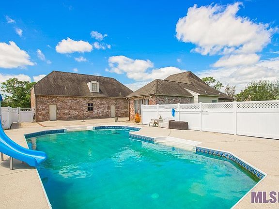Welcome to Jubilee Estates in Watson! Home of the Live Oak Eagles. One-owner meticulously maintained and LOVED home situated on the perfect cul-de-sac lot in the PERFECT location. Over 3200 sq. ft (4 bedrooms + 4 bathrooms + bonus area) on .5 an acre with a pool, large outdoor entertaining area, room for 8+ parked vehicles, and COMFORTABLE LUXURY throughout. The moment you walk in you'll notice the careful detail given to every corner of this home. Rich, reclaimed WOOD floors throughout along with rare slate and tile in the kitchen and bathrooms; SOARING ceilings; triple-crown moulding; recently painted neutral tones, and tasteful finishes. The heartbeat of this home is the spacious kitchen with rich cypress woodwork, gas cook top and a plethora of cabinet space. Family and friends have so many places to gather--- cozy, bright breakfast nook overlooking the pool, sitting area with entertainment center that opens up to the kitchen, formal dining room, AND HUGE living room with graceful built ins and tons of natural light. Open yet distinct living area! The triple-split floorplan is IDEAL for families of all sizes and types: 2 bedrooms are adjoined with an elegant bathroom in one hallway; master bedroom is smartly situated overlooking the pool and massive en suite (dual vanities+stand alone shower+soaking tub +large closet space; 4th bedroom is located in it's own wing with full bathroom and LARGE laundry room nearby. Upstairs you'll find a completely finished and private space with full bathroom which is well suited to become a man cave, movie theater, 5th bedroom, mother-in-law-suite, art or music studio--you name it. The backyard is completely fenced and features a serene pool with a brand new liner and pump. Enjoy sidewalks and a neighborhood park with less than 20 homes in the subdivision. Come on home and stay a while. Call today for a private tour. Enjoy!