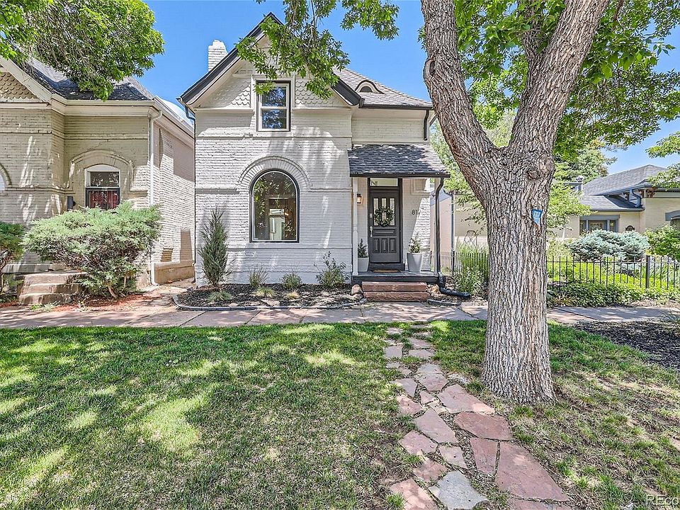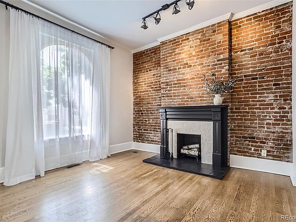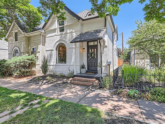 Nestled at the crossroads of Denver's most sought-after neighborhoods - Curtis Park, RiNo, and Five Points - this immaculate 1890 Italianate Victorian has been thoughtfully updated, seamlessly blending original historic charm with modern conveniences. Exposed brick, new skylights, and a vintage claw foot bathtub exude character, within close proximity to the city's finest bars, restaurants, breweries, and coffee shops. The home boasts a freshly painted exterior and hardwood floors throughout the main level, complemented by a newly carpeted office or non-conforming bedroom on the main level, as well as new carpet in all of the bedrooms and on the stairwell. The partially open floorplan welcomes you with an original banister, powder room, living room, dining room, and kitchen, all recently repainted with new light fixtures. A small mudroom with additional storage and new skylights flood the space with natural light. The kitchen showcases stainless appliances, a brand new refrigerator, and recently updated (2021) quartz countertops, backsplash, cabinetry, and farm sink. The spacious primary bedroom features a walk-in closet, while both bedrooms boast newly installed blackout honeycomb shades. A fully renovated (2023) 5-piece bathroom offers a brand new glass shower, double-vanity with quartz, LED touch-mirror, a vintage claw-foot tub, new floor tile, and light-filtering shades for natural light.