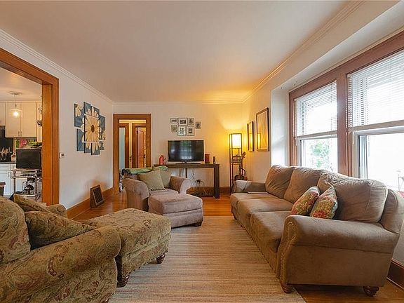 This 3 bed/1 bath 1.5 story home is a charmer! Original hardwood flooring throughout the whole home that is glowing and in pristine condition. On the main level, you will walk into a generously sized living room that is perfect for lounging and hosting guests. Around the corner you will find the formal dining room and kitchen with plenty of cabinet space and storage. Everywhere you walk you'll notice the glowing hardwood floors and custom trim work-- including in the two bedrooms that are just past the living room. Right outside the rooms is the full bath. Head upstairs to the spacious master bedroom-- custom built in book shelves, natural light, some exposed brick, and space for an at home office or sitting room. The garage is attached to the home and from it you will enter into the basement that is waiting for your finishing touches. Let's not forget the location of this beautiful 1.5 story craftsman this home is in a highly sought after neighborhood.