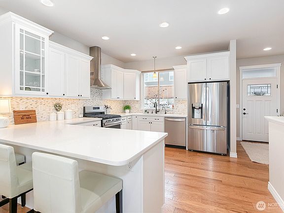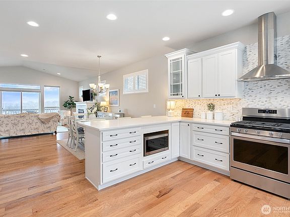 Nestled in the desirable King Mountain neighborhood, this beautiful home offers stunning views of Bellingham Bay and the San Juan Islands. This charming home features a bright and open floor plan, perfect for modern living and entertaining. The well-appointed kitchen features quartz countertops and stainless steel appliances. A large dining area flows from the kitchen to the living room with a cozy fireplace and vaulted ceilings. Take in the gorgeous views on the large deck off the living room. Very spacious bedrooms. The lower level boasts a versatile bonus room, ideal for a home office, gym, or play area. A/C. Low-maintenance yard. Close to everything that Bellingham has to offer – restaurants, shopping and more. This home is perfect!