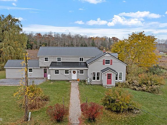 This charming farmhouse is a spacious 5-BD, 2-BA home on 30 acres of picturesque countryside. The heart of the home is a lrg. kitchen with French-doors that open to stunning views, seamlessly connecting indoor & outdoor spaces. The 1st-floor bathroom serves as an en-suite for the 1st-floor bedroom leads you to the rest of the home. A finished room off the mudroom offers a perfect space for a home office or gym. The cozy living room features a pellet stove for relaxing with a good book. Outside, a 2-car garage provides ample storage, along with a barn & a lrg. pond. With 10+ wooded acres, 15 tillable acres, & land suitable for pasture, this property is ideal for a peaceful rural retreat or small-scale agriculture. Its versatility makes it a practical choice for comfortable rural living.