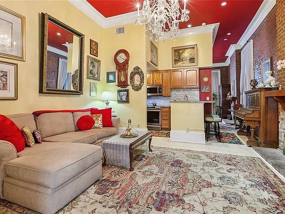 This charming and elegant condo is located in the heart of the French Quarter, offering the best of this iconic neighborhood. Surrounded by historic homes, renowned restaurants, shopping, and entertainment, this first-floor unit seamlessly blends classic New Orleans character with modern amenities. Fully updated, the condo boasts central AC/heat and a spacious open-concept living and kitchen area, for all your entertaining needs. Soaring ceilings with crown molding, stunning chandeliers and medallions, and large windows flood the space with natural light. Beautiful brick fireplaces add to the historic charm in the living room and bedroom. Step outside into the serene courtyard, for relaxing or entertaining. Convenient shared laundry right outside your door. Don't miss the chance to own a piece of New Orleans history. Owner will consider selling the condo furnished, and move-in ready. Welcome to 817 Burgundy!