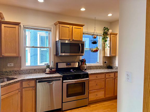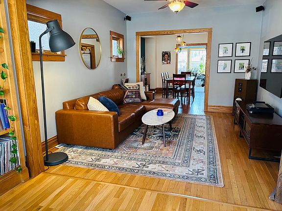 Sold before Processing. Embrace the warmth and charm of this inviting American Four Square in Oak Park's desirable Ascension neighborhood. This spacious two-bedroom home surprises with its thoughtful layout, generous living areas, and move-in ready condition. Step inside to discover the beautiful maple hardwood floors that flow throughout. These lead to a galley kitchen with sleek granite countertops and stainless steel appliances. The updated half bath on the main floor offers convenience, while a full bath upstairs complements the two bedrooms. The primary bedroom is a true retreat. French doors open to a versatile tandem room-ideal for an office, nursery, or craft room. On the main level, enjoy quiet moments in the front library or unwind in the back den, complete with a mudroom. The tall, finished basement family room (currently used as a bedroom) offers additional living space for relaxation and entertainment. This home is equipped for comfort with thermopane windows, central air, and a reliable furnace. An in-home washer and dryer make laundry a breeze. Step outside to your private oasis-a fully fenced yard with a patio is perfect for gardening or simply enjoying the outdoors. With a prime location, you're just a short walk from the Blue Line train, the scenic Oak Park Conservatory, Rehm Pool, local parks, tennis courts, and the vibrant Harrison Arts District. Explore South Oak Park's diverse shops and eateries within easy reach. Make this charming Oak Park home your new sanctuary. It offers the perfect blend of space, style, and convenience.
