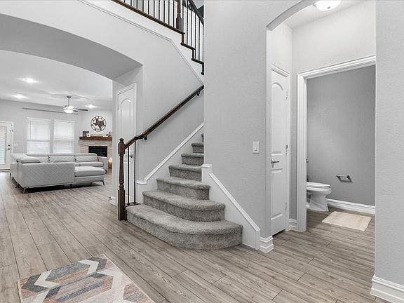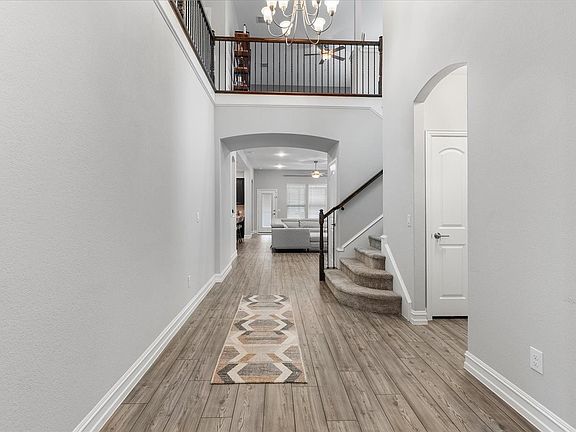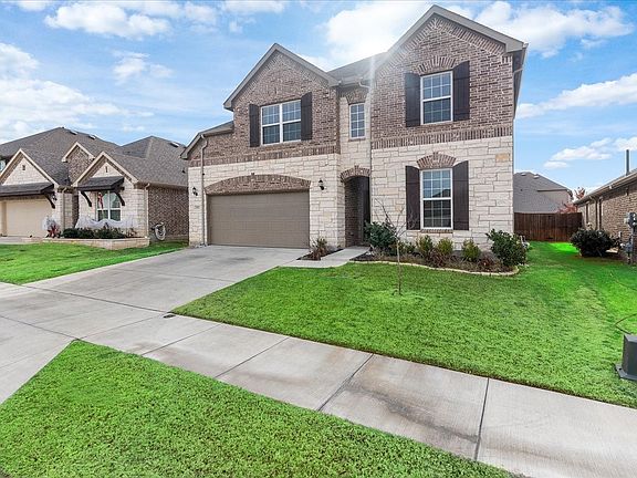 Welcome home to this exceptional custom residence in the highly sought-after Willow Ridge Estates of Haslet. Offering over 3,000 square feet of open-concept living, this recently constructed two-story home perfectly blends everyday comfort with unforgettable entertaining. Soaring two-story ceilings, abundant natural light, and an elegant staircase with wrought iron railing greet you in the foyer. Just off the entry, a versatile space serves perfectly as a private home office or formal dining room, ideal for both work and hosting. The expansive eat-in kitchen impresses with abundant cabinetry, granite countertops, smart appliances, and a built-in desk or bar area. Flowing seamlessly into the main living space, oversized windows showcase views of your resort-style backyard oasis—complete with a heated pool and spa, outdoor kitchen, and integrated landscape audio for year-round entertaining. The main-level primary suite offers a serene retreat with backyard views, a spa-inspired bath featuring granite countertops, garden tub, and custom walk-in closets. Upstairs, enjoy a massive family or game room perfect for a home theater, along with spacious guest bedrooms, each with walk-in closets. An epoxy-floored garage with custom storage, plus energy-efficient windows, smart thermostat, appliances, water heater, and irrigation system complete this incredible home. Designed for entertaining and built for comfort, this Haslet gem is a must-see. Schedule your private tour today.