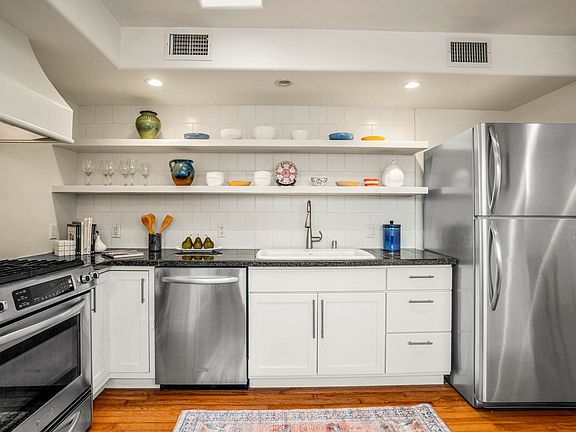 A treasure in Santa Fe’s Historic Eastside, this beautiful 1 bedroom/1 bathroom condo, is located across from the Santa Fe River and offers a picturesque view of the river and its towering cottonwoods. Upon entering the home, one experiences a feeling of elegance with solid oak flooring throughout, divided light windows and a corner gas fireplace that enhances the ambiance. The kitchen has stainless steel Kitchen Aid appliances, open shelving and a sweet breakfast nook. In keeping with the level of this property’s excellence, the bathroom was renovated in 2020 and has wood plank tile flooring and a deep soaking tub. The spacious bedroom is on the NorthEast side of the property, offering great privacy and serenity. More features: New roof in 2020, 1 designated parking space, forced air heating, refrigerated central air conditioning, an easy stroll to Canyon Rd. This wonderful home is your opportunity to experience living in Santa Fe’s Historic Eastside.