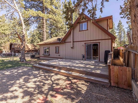 Rustic warmth, mountain charm, and room to breathe—this Big Bear City gem near Shay Meadows offers the perfect blend of comfort and character. With 3 bedrooms, 2 full bathrooms, and approximately 1,570 sq ft, this inviting two-story home features vaulted T&G ceilings, exposed beams, and multiple skylights—including one above the breakfast bar—that flood the living space with natural light. The spacious great room is anchored by a freestanding fireplace and flows effortlessly into the kitchen and dining area, where natural wood cabinetry and modern updates create a cozy yet functional hub. Two main-level bedrooms and two baths—one en-suite—provide convenience and flexibility, while the upstairs loft offers a charming bonus space for guests, a studio, or a game room, complete with built-in storage and rich wood textures. Step outside and enjoy a fully fenced yard framed by mature trees, with a large deck and peek-a-boo views of Gold Mountain. Whether you're hosting friends, enjoying a quiet morning, or letting the kids run free, there’s space here for it all. The oversized two-car garage includes laundry hookups, and the separate storage shed—with electrical—adds even more utility for hobbies, tools, or creative projects. Just up the street, you'll find the Maple Hill trails for hiking and exploring, while local favorites like Community Market and Thelma’s Family Restaurant are only minutes away. Plus, you're within a short drive to ski resorts, grocery stores, and the shimmering waters of Big Bear Lake. Come experience mountain living at its finest.