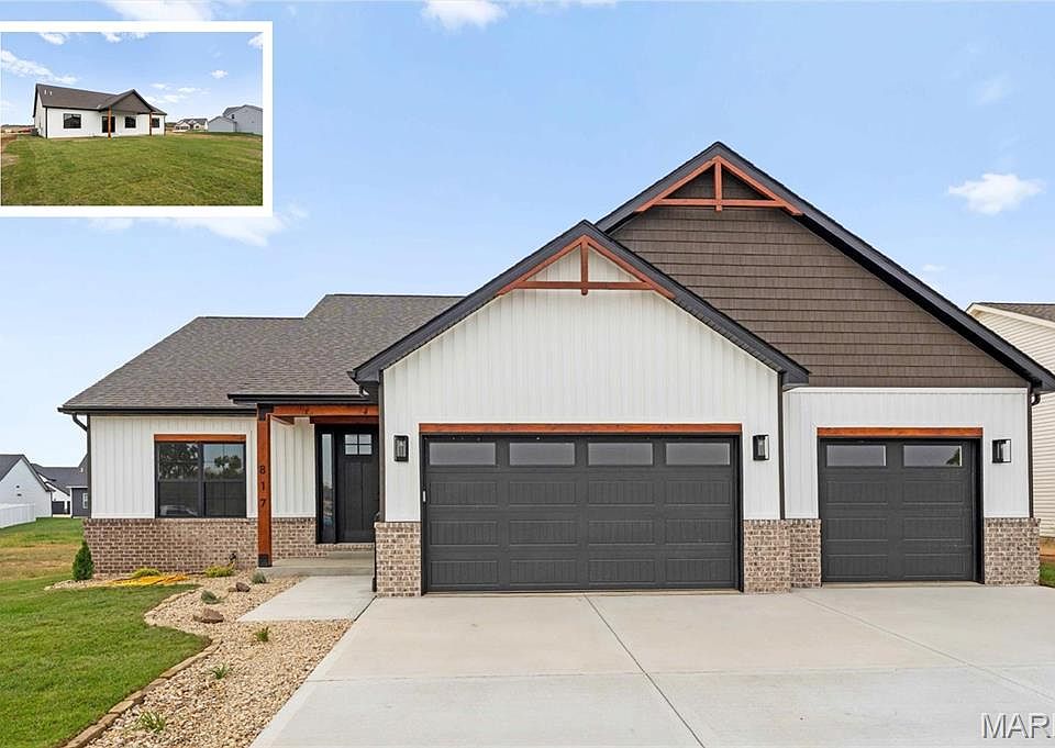 This stunning custom FIR floor plan Built by MJ Holland blends top-tier craftsmanship with premium finishes throughout. The split master suite boasts vaulted ceilings, an oversized walk-in shower, massive closet, and stack linen storage. The open-concept kitchen flows into a spacious family room—ideal for entertaining—with a cozy breakfast nook that leads to an extended covered patio. The main level also offers two guest bedrooms, a full bath, a generous laundry room, and a 3-car garage with 8-ft doors. The full, partially finished basement features 9-ft ceilings, a full bath, a large 4th bedroom, and an oversized entertainment space. Thoughtful upgrades include the massive kitchen island with quartz counter, full brick fire place, 7 ft solid core doors, commercial-grade windows, high-efficiency HVAC, LVP flooring, 8lb carpet pad, and sound insulation in all bedrooms and baths. Nestled in the highly desirable Augusta Greens Subdivision and O'Fallon School District, this home is perfect for modern living and effortless entertaining. Schedule your showing today!