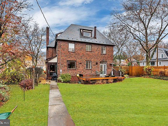 Imagine coming home to this rare, Tudor-style gem in the heart of Palmyra, blending historic elegance with cozy warmth. Built with distinctive clinker brick, copper gutters, and a long-lasting slate roof, this home stands as a testament to quality craftsmanship and timeless design. The current owner, an avid gardener, has thoughtfully landscaped the grounds, providing beautiful seasonal blooms and lush greenery year-round. Inside, original hardwood floors, restored fireplace mantel, and intricate details like the stained glass above the half bath add layers of warmth and character. The spacious kitchen is both stylish and practical, offering a double oven, wine bar, and ample storage for the passionate cook or entertainer. A sliding glass door leads to a sun-filled deck for enjoying morning coffee or dining al fresco in the evening. Downstairs, the basement, with slate floors and fireplace, has great potential as an entertainment area, plus a dedicated laundry space-complete with a convenient laundry chute. In the dining area, a gas Franklin stove creates a cozy ambiance, while the living room features a classic fireplace and French doors that open onto a beautifully covered patio, perfect for outdoor relaxation. A spacious attic awaits your vision, offering endless potential to expand or create a quiet retreat. And for added convenience, the detached two-car garage, equipped with electricity, offers plenty of room for vehicles, storage, or even a workshop. This truly one-of-a-kind home nestled on a corner lot promises an ideal haven for those seeking a mix of charming historical character and modern convenience in a friendly neighborhood atmosphere. ***Offer deadline 12/7/24 at 12:00pm