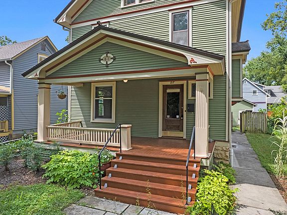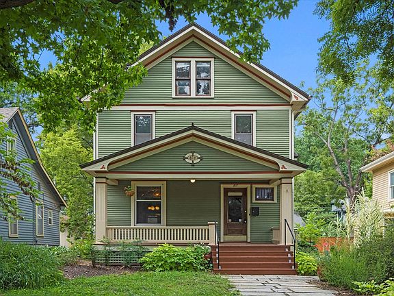 Step into timeless charm with this spacious 1910 Four-Square Victorian. Flooded with natural light, the home showcases four stunning stained-glass windows, hardwood floors throughout, and beautifully preserved original woodwork. The remodeled kitchen features an open-concept layout with granite countertops, stainless steel appliances, and the perfect blend of modern convenience and historic character. A wood-burning stove anchors the living area, while the marble-accented half bath adds a touch of elegance. The expansive third-floor room offers flexible use as a bedroom, playroom, or office. Outside, enjoy the screened-in back porch or unwind on the welcoming covered front porch—ideal spaces for morning coffee or evening relaxation.