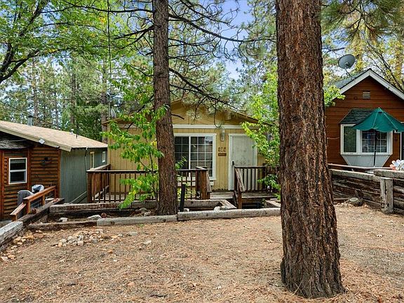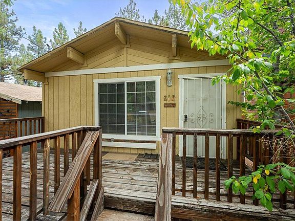 Adorable mountain cabin located just doors from the national forest and hiking trails. Open floor plan with T&G walls and open beam vaulted ceilings. This home offers a great floor plan with 2 bedrooms, and 1 full bath. Each bedroom has its own back door leading to a two-tiered deck and fenced back yard. Cozy up to the fireplace adorned with beautiful stained-glass inlayed lights above the mantel! Very unique and beautiful lit up with a fire going! Enjoy the fresh air and sunshine on both front and back decks. Comes furnished and ready to enjoy! Such a sweet little spot to get away from the chaos of everyday life! With a general store and restaurant/bar at the bottom of the street, you are sure to love this convenient location! And it's only minutes from the ski slopes, lake, and shopping too! Don't miss it!