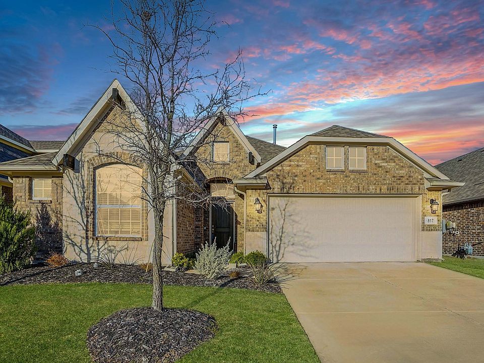 Experience serene living in this gorgeous single-story home that backs to a greenbelt with stunning pond views in a quiet, peaceful neighborhood. Designed with functionality and style, this home features a thoughtful split floor plan, offering two spacious secondary bedrooms at the front and a private primary suite tucked away at the back for ultimate privacy. The bright, open living area is an inviting space, boasting wood-look tile flooring, large windows that flood the room with natural light, and a striking stone fireplace that serves as the centerpiece. The kitchen is a true showstopper with bright white cabinets, a stainless steel appliance package, and an entire wall dedicated to storage. A charming dining area overlooking the backyard includes a designer feature wall, adding a modern touch. Step outside to a large backyard oasis that provides breathtaking water views of the pond—perfect for relaxing or entertaining. Conveniently located near the middle school, this home blends comfort, style, and an unbeatable location. Don't miss this incredible opportunity to enjoy tranquil living with all the modern amenities you desire