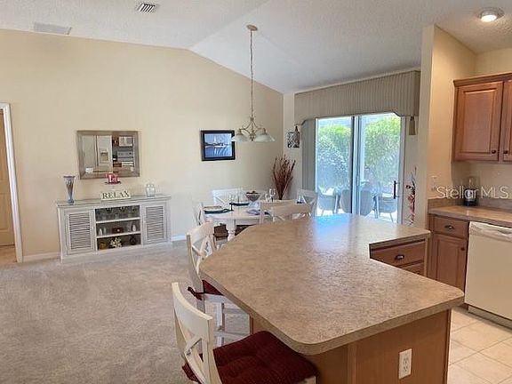 CALL TODAY!! to see this Meticulously Maintained Bougainvillea model with the BOND PAID. Being this close to Lake Sumter Landing in the Village of Caroline is Awesome. Just pack your toothbrush and Luggage and move right in because this home is being sold TURN KEY. From the moment you drive up you'll notice the color coated driveway and the terrace wall around the stone filled landscape beds. Open the Full light Leaded front door and your welcomed by the open layout. To the left is the guest wing behind the pocket door. The kitchen offers raised paneled Oak cabinets with crown molding and pull outs. In the laundry room you have cabinets over the Washer & Dryer. The Master bedroom offers a large walk in closet with multi level shelving and the bath has large tile laid on the diagonal. Enjoy your backyard with plenty of privacy from the mature landscaping. The Large patio is a great place to grill out or soak up some sunshine. Solar Fans and Solar lights were installed in 2011 and in 2017 The A/C was replaced.