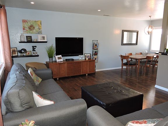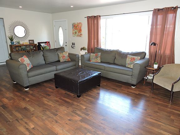 If you want outdoor living/entertaining space...This is the home for you! Large back yard set up with stamped concrete patio space, kid play area and best of all a BBQ kitchen with sink & refrigerator. Also the fenced off front yard space is a large patio area too for entertaining. The home has been beautifully remodeled through out! Remodeled to create a larger master bedroom & bath and a hall access to the garage. Kitchen & both bathrooms updated. Newer dual paned windows. All walls & ceilings re-textured and beautifully painted. Laminate & tile floors, no carpet. Lots of natural light including 2 solar tubes. Recessed lighting added to several rooms. Copper plumbing re-routed overhead. Roof approx 3 years old. Finished off garage with pull down ladder to storage. Newer water heater & furnace. Newer stucco & paint to exterior. Low maintenance front yard. Still more I could mention - The only thing left to do is move in!