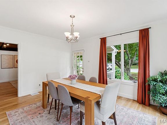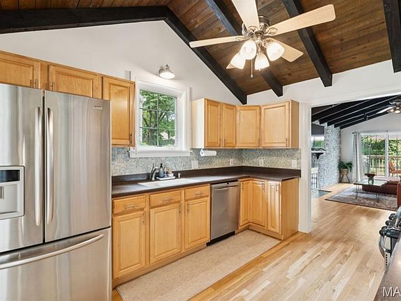 Showings begin Friday the 5th. Sellers live and work from home and may have a dog in the backyard. This Webster Groves home sits on a quiet street that ends at Deer Creek Park. Full of charm and character! A new (2023) path leads to covered brick porch with sunny yellow shutters and a glass-paneled front door that hints at the warmth inside. Hardwood floors (refinished in 2022) lead to light-filled spaces. Imagine morning coffee in the window-lined dining room with crown molding, weekends cooking in the vaulted kitchen with its gas range and ample counterspace, or cozy evenings in the living room where a brick accent wall with fireplace and soaring wood ceiling give off Scandinavian lodge vibes. Sliding doors open to backyard with many updates completed in 2023, including large deck with nook for grill, fire pit & patio. String lights add magic — its the perfect yard for play and lazy summer nights. The primary suite, with its beamed ceiling and ensuite bath, is a restful escape, while the second bedroom’s wood-beamed ceiling offers its own charm. Even the spacious main-floor laundry feels special, with wainscoting, storage, a sink, and calming decor. A 3-car garage is a bonus. Newer furnace, A/C, and water heater (2021-22). Close proximity to Maypop Coffee, Avery Elementary, and trails complete this one-of-a-kind Webster Groves find. Open Saturday 1-3PM. Offer deadline is Sunday at 5PM