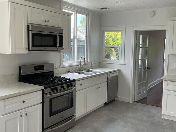 This beautiful Hollywood home is a gem with modern updates in a classic and charming craftsman. The house features 3 bedrooms, 2 newly remodeled bathroom and huge remodeled kitchen. Central air keeps you cool throughout the year. A spacious living room full of natural light greets you as you enter. A large dining area with room for a huge family table looks out classic french style windows to your private front yard with sunlight streaming in. Head into your spacious chef's kitchen with all stainless steel appliances and chic lighting where you will love to entertain. Your kitchen door leads to the back convenient 2 private parking spaces. Laundry hookups in kitchen. The versatile main floor bedroom with closet and private access could also function as an office or guest room. Large windows allow for lots of natural light and a calm space to work or live. Head up the stairs to your other two bedrooms, both featuring walk in closets. The second full bathroom is at the top of the landing. Views of the iconic Hollywood sign and Griffith Observatory from your bedroom. This won't last!! Come take a look!