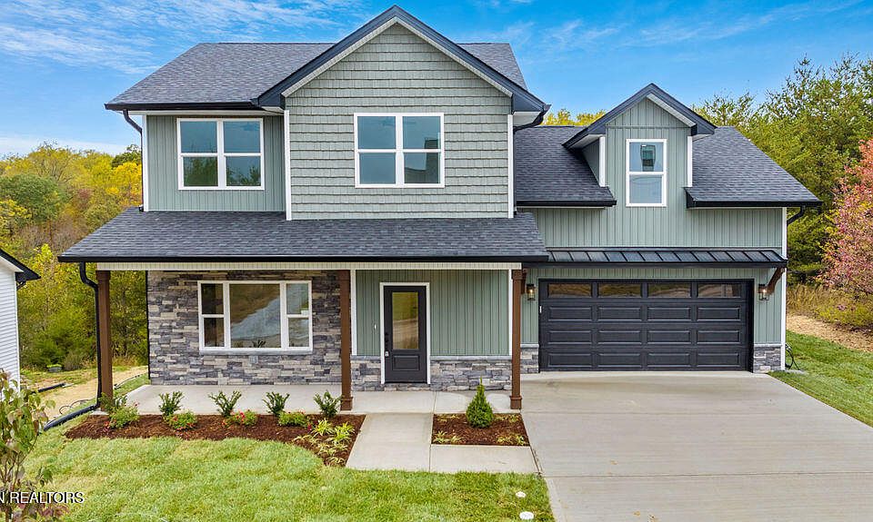 New Construction in popular South Knox with mountain views situated on over an acre lot! This gorgeous 4 bedroom, 2.5 bath home offers a spacious layout with a gas fireplace, LVP flooring, matte black finishes, and 9 ft ceilings throughout. The kitchen is complete with an 8 ft center island, stainless steel appliances, granite countertops, pantry closet, and lots of cabinet space. The master suite is sure to impress with lovely views out the large window, a custom tile walk-in shower, double sink vanity, tile floors, and a large walk-in closet. Laundry room is located upstairs with the bedrooms for convenience. Excellent outdoor space with a private covered patio perfect for relaxing or entertaining. County taxes only and no HOA fees! One year builder warranty. Very convenient location just minutes from shopping, dining, Baker Creek Preserve, Urban Wilderness, UT Hospital, and downtown. Property line on the right side is marked with a survey stake, and rear lot line extends all the way to Marston Lane. Tax amount reflects lot only. Owner/Agent. *Glass door for master bathroom shower to be installed by mid November.*