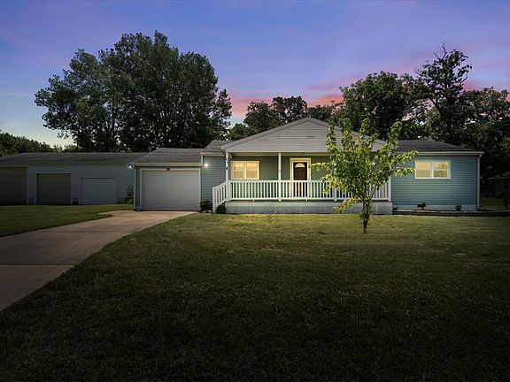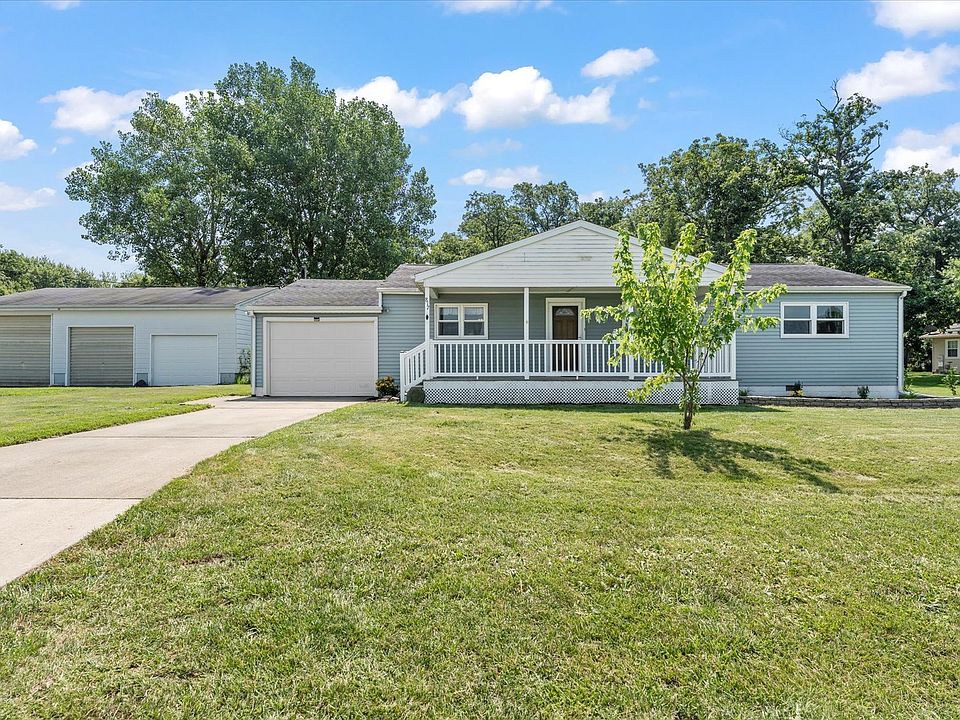 This well-maintained ranch sits on a .65-acre lot on the edge of Monticello and features a welcoming front porch, new carpet throughout, and great garage space with a 1-car attached garage and a 3-car detached garage with an attached storage shed-perfect for storage or hobbies. Inside, you'll find two generously sized bedrooms, an updated full bathroom with a walk-in shower, and an extra room ideal for a home office or den. The bright living room offers large windows, and the spacious eat-in kitchen flows into a separate dining room-perfect for gatherings and everyday living. The full unfinished basement provides excellent storage and added peace of mind. All windows have been replaced within the last 6 years, offering efficiency and ease. Outside, enjoy the large backyard with a concrete patio. This move-in ready home is being sold as-is and has been pre-inspected.