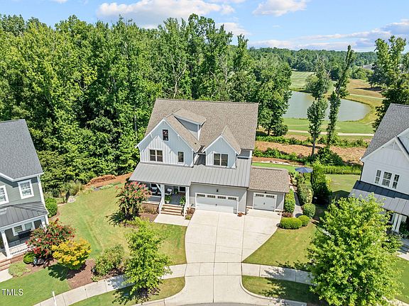 This stunning 7-bedroom, 6-bathroom custom-crafted home located on the 7th hole of the prestigious 12 Oaks Golf Course is where elegance and stunning design is matched only by the breathtaking views. This expansive home offers sweeping water and fairway views that create an everyday backdrop that feels like a vacation. From the moment you enter, you're welcomed by high-end finishes, thoughtful architectural details, and a floor plan designed to accommodate modern lifestyles with ease. This home's flexible floor plan includes multiple en-suites, giving family and guests their own private retreats, a formal dining room, oversized living room and gourmet chefs kitchen made for entertaining. A dedicated home office provides a quiet, light-filled workspace, while two huge bonus rooms offer endless potential for playrooms, media rooms, or second living space. The private owner's suite is a sanctuary in itself, complete with a luxurious en-suite bath and picture-perfect outlooks over the fairway, the perfect place to start and end your day. The newly remodeled walkout basement is a true showstopper. This flexible area serves beautifully as a media room, game room, or indoor/outdoor entertainment zone. The entire basement space is seamlessly integrated into the outdoors, creating effortless flow into the backyard. Step outside to your tiered backyard oasis, designed for entertaining and unwinding. It boasts, multiple patio spaces, two built-in firepits, over 700 square feet of professional-grade putting green, and ample space already designed to accommodate a future pool. Whether you're hosting guests or enjoying peaceful evenings under the stars, the possibilities in this yard are endless. A three-season room provides additional outdoor living space, perfect for enjoying morning coffee or sunset cocktails with panoramic course and water views. Just a short golf cart ride away, you'll find the 12 Oaks Clubhouse, championship golf course, resort-style pool, upscale dining and bar, F45 fitness studio, tennis and pickleball courts, walking trails, multiple playgrounds, and the new Oakview Commons plaza placing you at the center of this prestigious community's premier amenities, all without ever needing to leave the neighborhood. From its custom craftsmanship to its thoughtful design this home offers luxury, lifestyle, and livability in one of the Triangle's most desirable communities. With space to live, work, and play all just steps from world-class amenities this exceptional residence truly stands apart. An exceptional opportunity to experience resort-style living, this home is truly a must see!