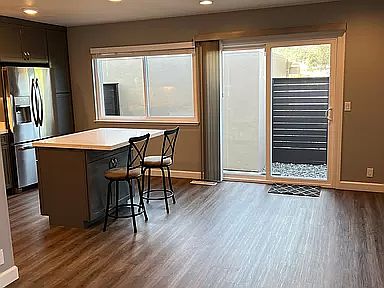 This beautifully remodeled duplex sits on a quiet street in a great neighborhood, just steps from walking, biking, and hiking trails. The open floor plan features a modern kitchen with an island, stainless steel appliances, brand-new cabinetry, and quartz countertops with a matching backsplash. The convenient in-unit laundry includes an upright washer/dryer combo. The primary bedroom offers an en-suite bathroom, and there is an additional full bathroom near the second bedroom. Enjoy quiet double-pane windows and sliding glass doors throughout. Both sliders open to two private patios, perfect for relaxing or entertaining. The unit also includes a covered carport for one vehicle and an additional designated parking space, with plenty of street parking available. All of this is within walking distance to the Linda Mar shopping center and Linda Mar beach. Owner pays for Garbage, Gardner and Landscaping. Tenants are responsible for Water, PG&E cable and internet.