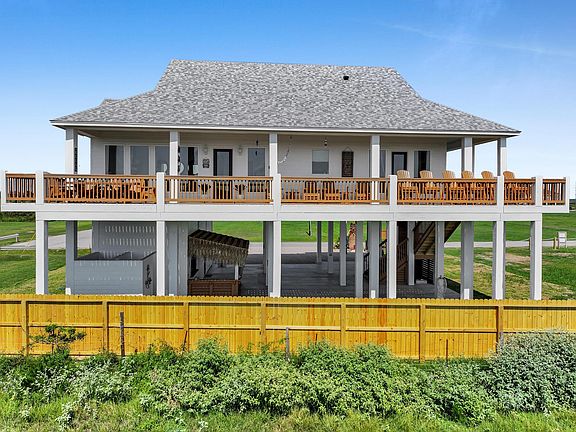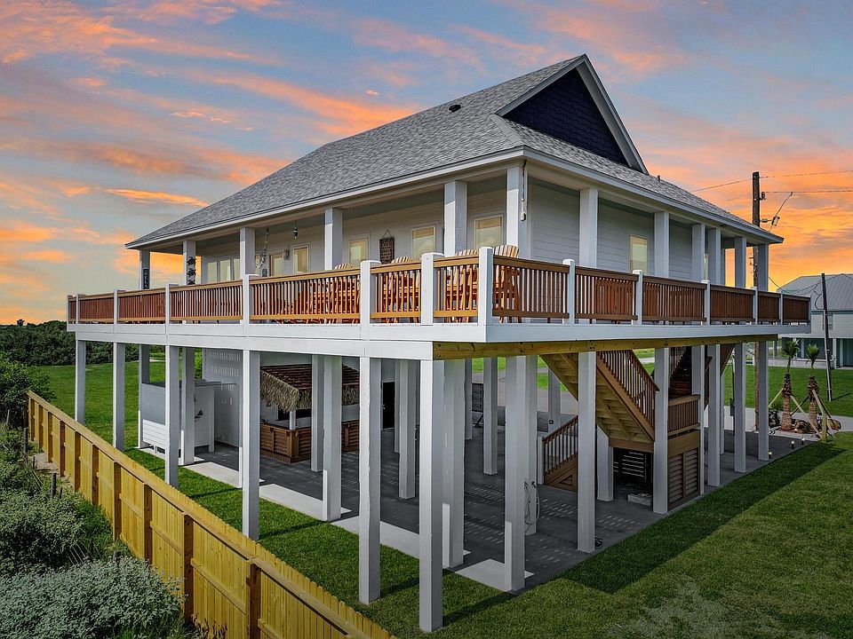 Gorgeous new construction 5-bedroom, 4-bath beach home in the private gated Rancho Carribe neighborhood! Designed for luxury and comfort, this coastal retreat sleeps 12 and conveys fully furnished. Enjoy two fireplaces, crystal quartzite countertops, and a stunning custom bar table and fireplace hearth crafted from exotic Parota Wood imported from South America. Entertain with ease thanks to the built-in ice maker, beverage cooler, wet bar with wine & glass racks, and custom cabinetry throughout. Modern upgrades include HVAC with dehumidifier, Wi-Fi thermostat, and dual 50-gallon water heaters. Outdoors, relax at the tiki bar with roll-up doors, spacious patio with included furniture, and private golf cart path directly to the beach. Home is pre-wired for a cargo lift, offers a large garage with loft storage, and features built-in bunk beds. Perfect as a high-income investment property or your full-time coastal residence. Stunning beach views on a large private lot—this one has it all!
