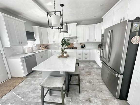 Enjoy the oversized driveway and in-ground pool with stamped concrete patio, ideal for entertaining or relaxing outdoors. The huge, open kitchen boasts modern upgrades and ample space for cooking and dining.