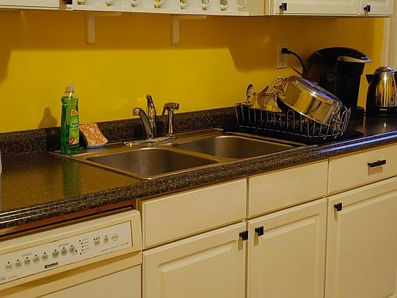 A full kitchen including microwave, coffee maker, toaster oven, blender, crock-pot.
