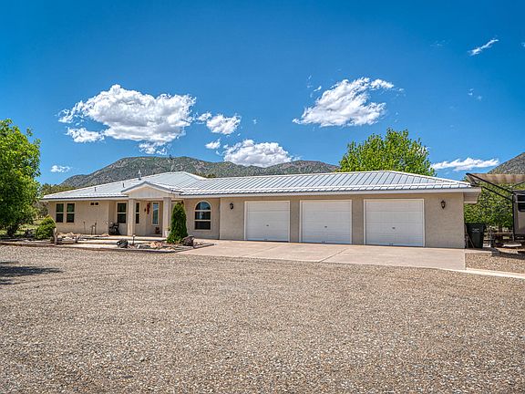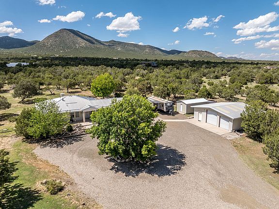 This North Edgewood, NM, 3 bedroom, 2 bath home on a partially wooded 4.71 acre lot is now available. This amazing location in Cedar Grove offers plenty of space, privacy and wildlife; converting to a horse property is easily achieved. The lot is fully fenced, with beautiful trees thinned and trimmed. There is a 30x35 insulated metal shop and a separate tool shed. Check out the lovely walled outdoor living area with two pergolas. What a great place to watch the sunset over the Sandias and South Mountain. The home features a formal dining room, breakfast nook, large primary bedroom suite and 3-car garage. Many upgrades in the last 2 yrs - new windows, partial new flooring, new pellet stove, and more. See the attached itemized list of upgrades. Easy commute to both Albuquerque and Santa Fe.