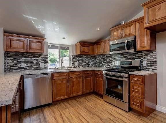 Wonderfully remodeled downtown Ojai home with room for everyone! Nestled at the base of the foothills, just a little off the beaten bath, this gated and large, light-filled home has handsome laminate flooring throughout, recessed lighting, a very spacious kitchen with Quartz countertops, self-closing cabinets and stainless appliances as well as super fresh bathrooms with marble countertops and pretty vanities. The private backyard has a built-in outdoor barbecue and an additional structure that could be a great play house or place to put all your stuff. Entire perimeter is secured with walls and fencing. Bigger is better and unusual for this area. Don't miss this opportunity to walk to Topa Topa school, to the Farmer's Market on Sunday and around the block with your dog at sunset in this quintessential Ojai neighborhood.