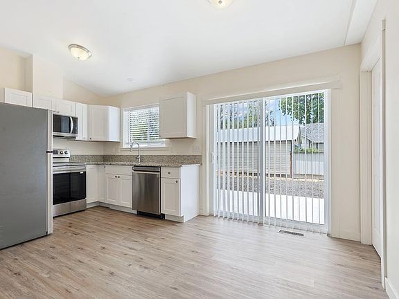 Experience modern living in this recently built single-level duplex for rent! This contemporary home boasts 3 bedrooms, 2 bathrooms, and a seamless open floor plan. The kitchen features granite countertops, stainless steel appliances (washer and dryer included!) and ample storage. Enjoy the convenience of a master bedroom with master bathroom and large closet. Two additional bedrooms offer flexibility for guests or a home office. Relax in peace on a quiet street surrounded by large mature trees. Other highlights include a laundry room, attached one car garage, and energy-efficient features throughout. Don't miss this opportunity to live in a brand new home in a desirable location!