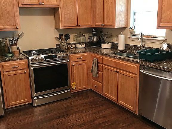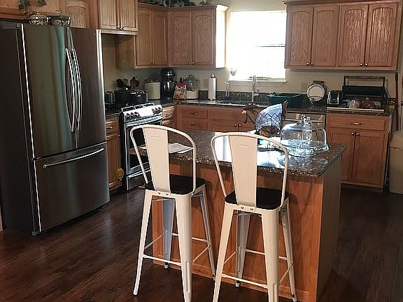 Home has new hardwood floors in the family room and dining room . kitchen has had an up date also . New quartz counter tops and stainless steel appliances . Nice private deck of the dining room . New carport that fits two large trucks .
