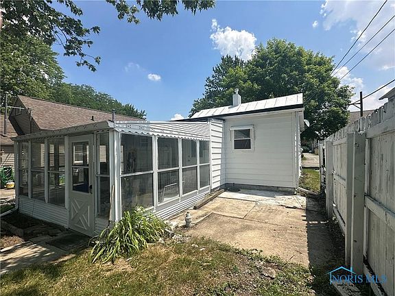 Cute bungalow with aluminum siding and a metal roof. Two bedrooms, 1 bath, 1 car garage.