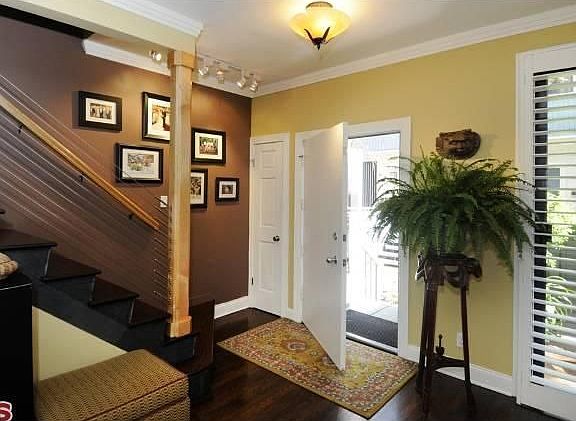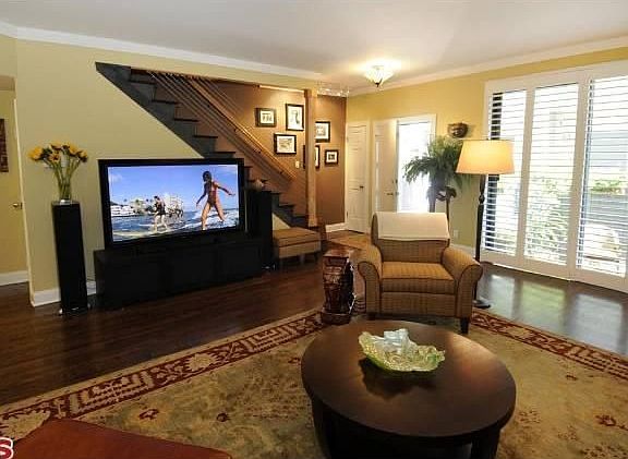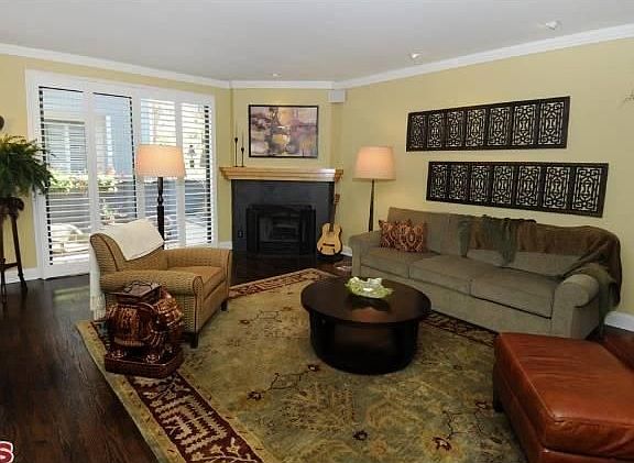 I love this townhouse! Every time I walk in I feel great & it makes me happy! I don\'t know what it is but I like it! The elegant yet contemporary living room exudes the warm charm of its well-traveled sellers w/beautiful richly stained oak hrdwd floors, triple-crown molding, recessed lights, plantation shutters & slate covered fireplace w/custom triple milled maple wood mantle. Through the archway, the spacious gourmet kitchen w/granite counter tops & stainless appliances opens to the quietly moody & intimate dining area. Up the oak hardwood & slate stairs with steel cable railing, the serene master suite w/vaulted ceiling, plantation shutters, walk-in closet and simple, clean and contemporary remodeled master bath delights. One guest bedroom, one bedroom used as an office w/custom built-ins and remodeled hall bath complete the 2nd level. The bright & cheerful tiled patio w/built-in S/S BBQ & extra seating/storage is the perfect retreat to enjoy California living at its best!