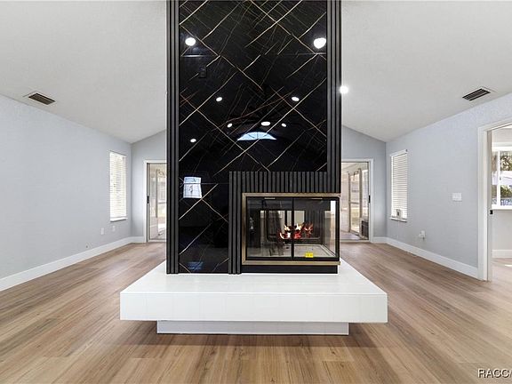 Modern fixturesCozy fireplaceRenovated kitchenQuartz countertopsOversized two-car garageCustom finishesCustom cabinetry