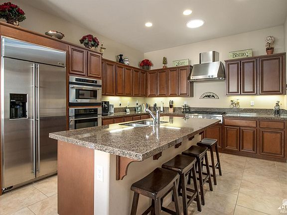 RENTED 1-4-2021 thru 5-31-2021 . RENTED 1-4-2022 thru 5-31-2022 (Booked 2022). Postcard-perfect fairway and southern mountain views enrich this luxurious Talea residence on the 15th fairway/green at The Golf Club at La Quinta's 18 hole championship course. Entertain in a spacious backyard with a pebble-finished pool and spa, waterfall, built-in BBQ island, and loggia with extendable awning. The Good Life continues indoors throughout a sprawling 1-level design of approx. 2,524 s.f. that hosts 3 bedrooms, 3 baths, and a side courtyard, w/fire feature, that welcomes light into a formal dining room and a great room with stacked-stone fireplace. The open plan centers around a grand kitchen with 2 islands, bar seating, granite countertops, built-in stainless steel appliances and a spacious pantry.