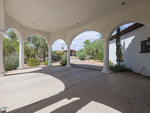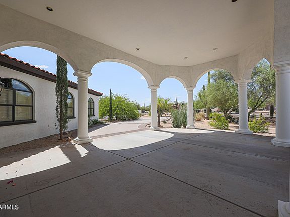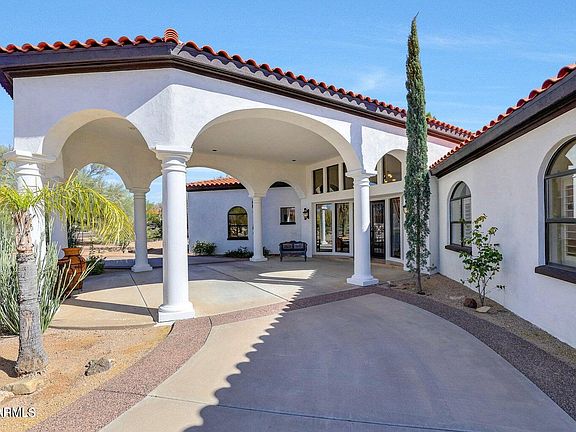 Discover this Mediterranean-inspired 4-bed, 4.5-bath home on .77 acres in Pinnacle Peak Estates III. Spanning 4,835 sq ft with a 3-car garage, it features beamed ceilings, stone accents, and expansive windows. The primary suite offers a private patio, spa, and fireplace, while the office includes wood bookshelves and a hidden Murphy bed. Enjoy a sparkling pool, pickleball court, a McDowell mountain views. Inside, find a modern kitchen, cozy family room, and remodeled bathrooms throughout.
