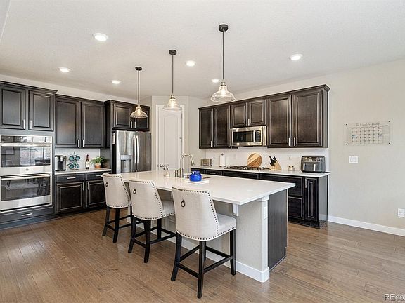 - Description: Stainless Appliances (Gas Cooktop, Double Oven, Microwave, Dishwasher And Refrigerator), Quartz Countertops, Tile Backsplash, Pantry, Large Center Island, Adjacent Eating Area