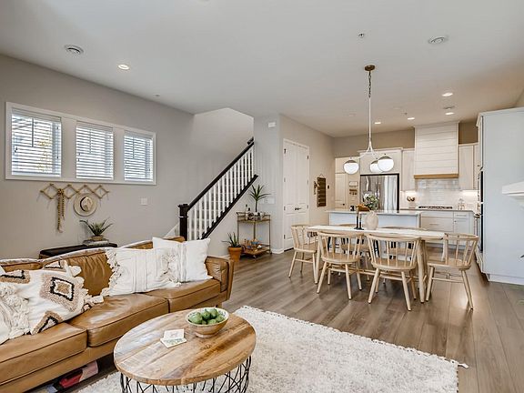 This stunning, like-new home will wow you! Open concept main level with beautiful wood floors, living room fireplace and custom kitchen with quartz counters, stainless appliances and shiplap detail. 3 bedrooms upstairs including the spacious primary bedroom with vaulted ceilings, gorgeous windows and an ensuite bathroom w/walk-in shower. Also upstairs is laundry and a cozy den/loft space to relax. Mudroom with built-in bench & hooks and shiplap detail. Plenty of closet space throughout. Outside you'll love the patio for lounging and visiting with the friendly neighbors. Plenty of green space and a community fire pit area. Minutes from shopping, dining, trails and Central Park. This home has it all and won't last long!