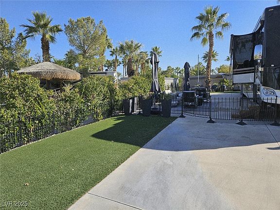Located within the Class A Las Vegas Motorcoach Resort, this tastefully appointed site comes fully furnished and offers an extended concrete pad that has created cozy seating areas to relax and enjoy as well as manicured landscaping with hedge rows, pet turf, and pet fencing that make it feel like your own private sanctuary. This site is a must see!